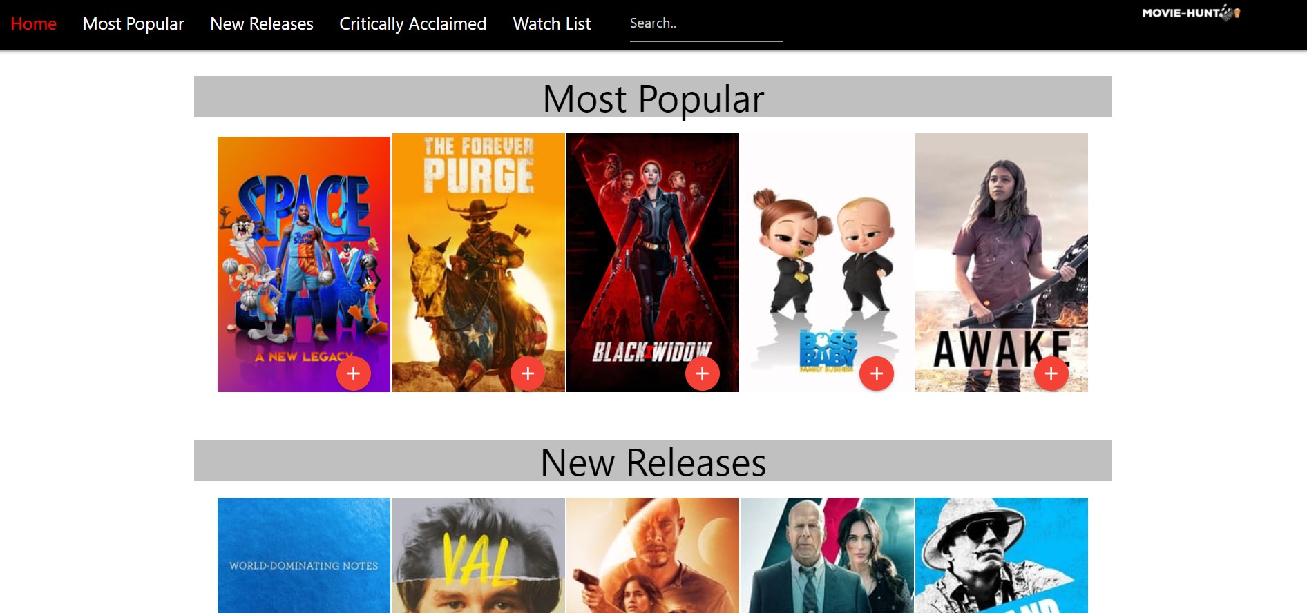 Movie-Hunt is a movie-based web application designed for users to search through thousands of movies. They can save movies to a watchlist, watch trailers, and explore other details about the movie.